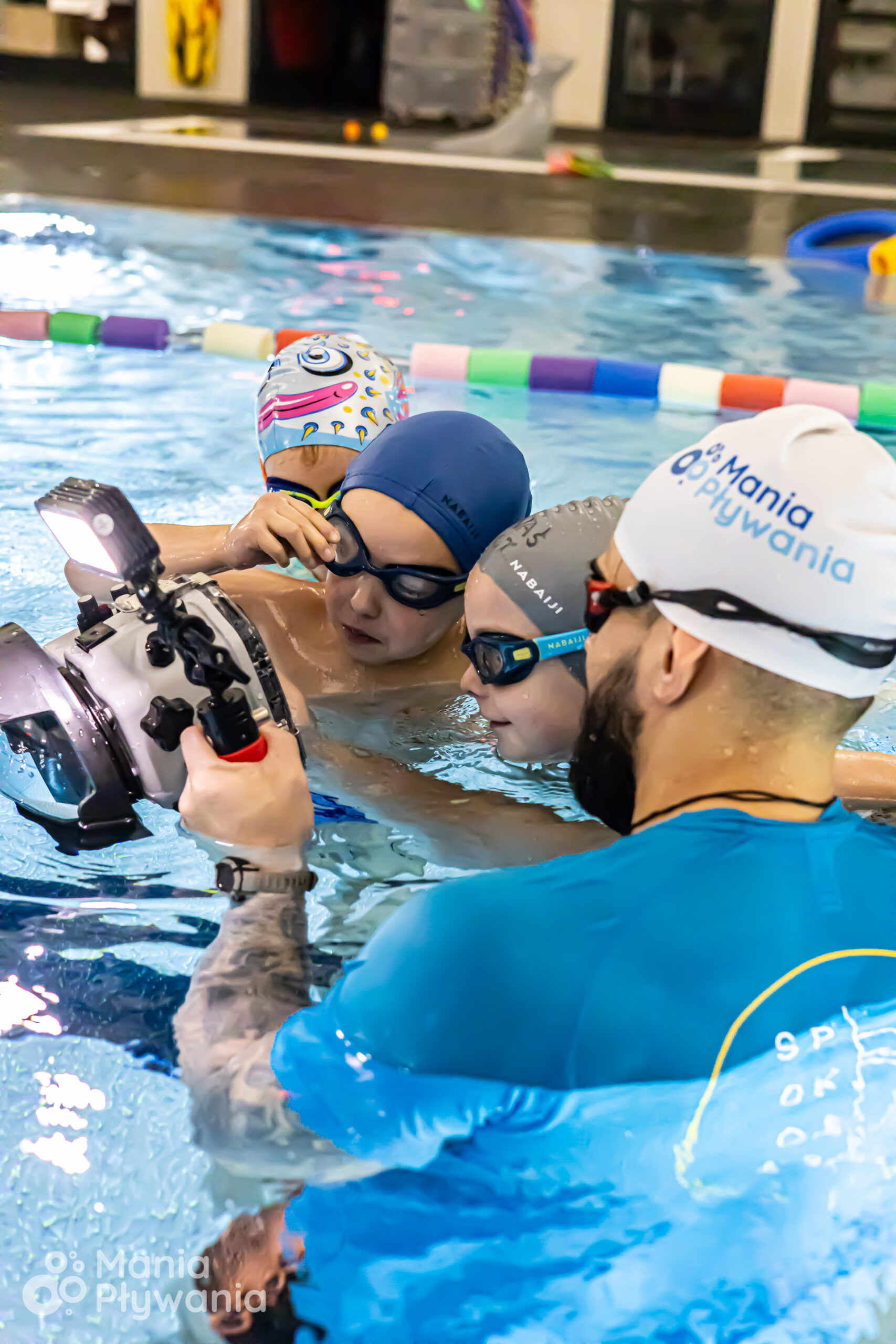 - Przyjazna atmosfera – sesje odbywają się w kameralnej przestrzeni basenu Manii Pływania, zaprojektowanej z myślą o dzieciach i ich rodzicach.